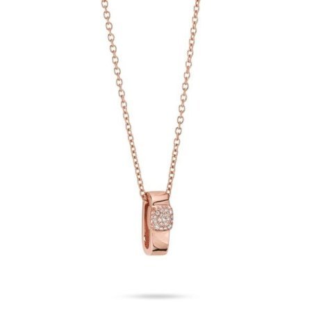 Girocollo placcato oro rosa con pendente ovale a fascia larga e quadrato in pavè di zirconi.