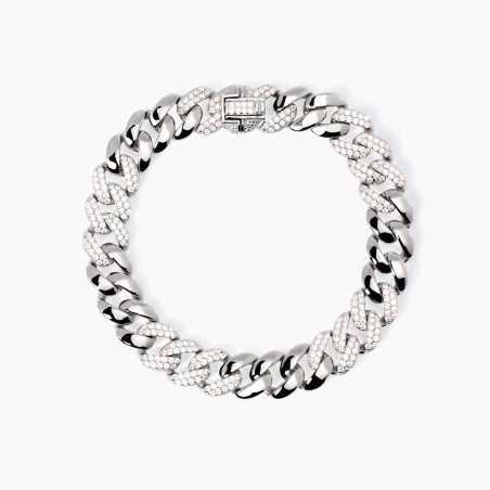 Bracciale da donna in argento rodiato con catena groumette e zirconi.