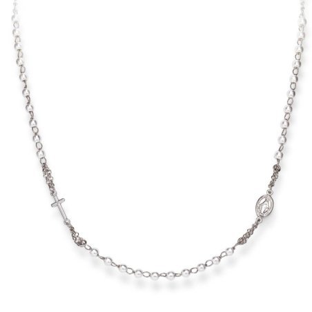 Rosario girocollo in Argento 925 con perle, lunghezza 50+2 cm.