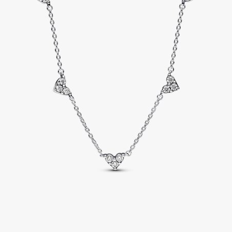 Aggiungi un tocco romantico al tuo look con la Collana Cuori con Tre Pietre della collezione Timeless. Realizzata in Argento Sterling 925, la collana presenta cinque piccoli motivi a cuore distanziati uniformemente sulla