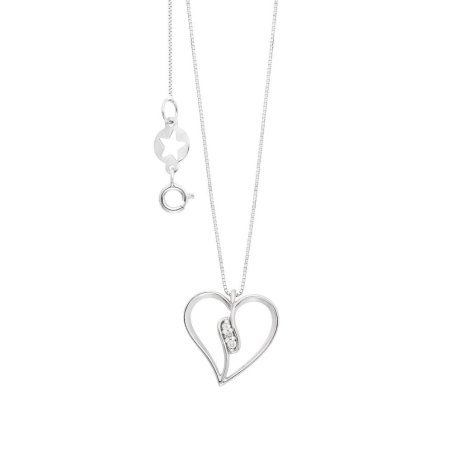 Collana in oro bianco 750‰ con cuore e diamanti bianchi, elegante e raffinata.