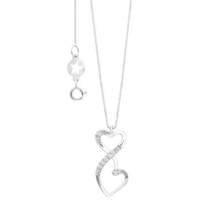 Collana elegante in oro bianco 750‰ con cuori e diamanti bianchi.