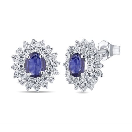 Orecchini in oro bianco con diamante e zaffiro di Bliss Incanto, eleganti e raffinati.