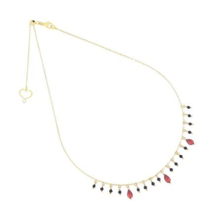 Elegante girocollo in argento 925 con spinello e granato, regolabile fino a 43 cm.