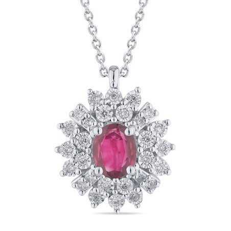 Collana Bliss in oro bianco con diamante e rubino, taglio ovale, caratura 0.1.