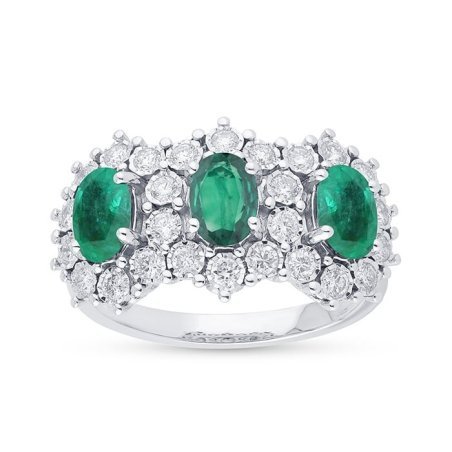 Anello in oro bianco con diamante e smeraldo, taglio ovale, caratura 0.52.