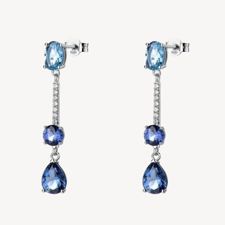 Orecchini pendenti in argento con cubic zirconia chiari e sapphire, collezione FANCY di Brosway.