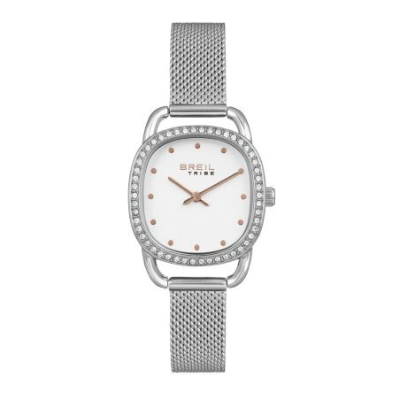 L'orologio solo tempo da donna Penelope di Breil Tribe è un accessorio elegante e sofisticato, perfetto per chi ama lo stile retrò. La cassa quadrata, decorata con lucenti cristalli, conferisce un tocco di classe, mentre le anse sottili aggiungono un'eleganza senza tempo. Il bracciale in maglia milanese, realizzato in acciaio, si abbina perfettamente alla cassa, che racchiude un quadrante bianco con dettagli in IP rose. Questo orologio non è solo un segnatempo, ma un vero e proprio gioiello da indossare.