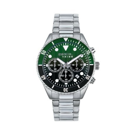 Cronografo da uomo Overhand di Breil Tribe con cassa in acciaio, quadrante verde e nero, resistente all'acqua fino a 100 metri.