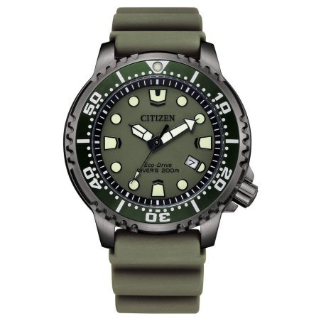 Orologio Citizen Diver'S Eco Drive, acciaio, cinturino verde, impermeabile.