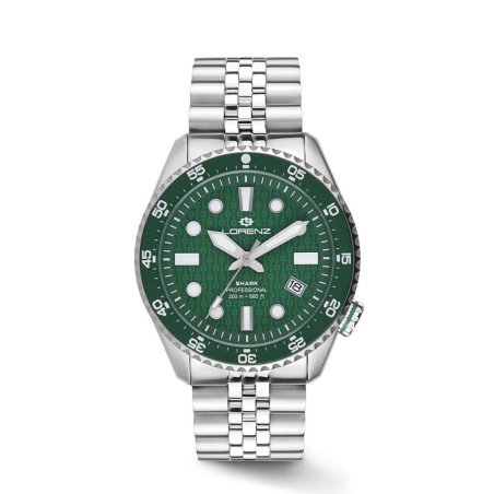 Il Lorenz Shark 5 è un orologio in acciaio inossidabile, impermeabile fino a 200 metri, perfetto per immersioni e uso quotidiano.