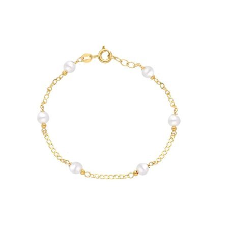 Elegante bracciale Baby in oro giallo 18 ct con imitazione perla.