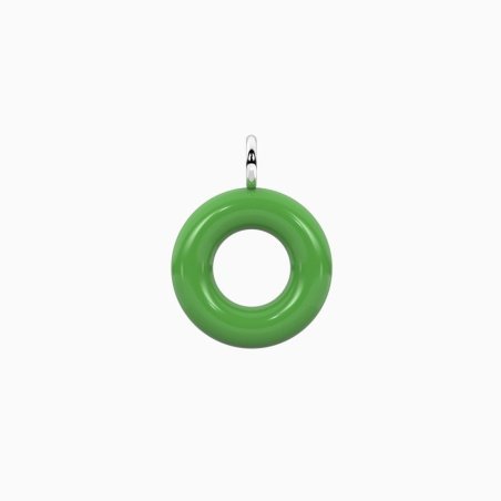 Ciondolo Kidult a forma di 'O' in acciaio smaltato verde, misura 12x15 mm.