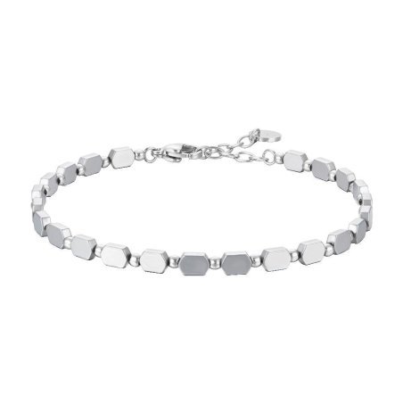 Bracciale da uomo in acciaio con ematite silver, lunghezza regolabile, by Luca Barra.