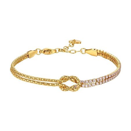Bracciale donna in acciaio IP gold con nodo e zirconi rosa di Luca Barra.