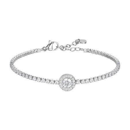 Bracciale tennis da donna in acciaio con zirconi bianchi di Luca Barra, elegante e regolabile.