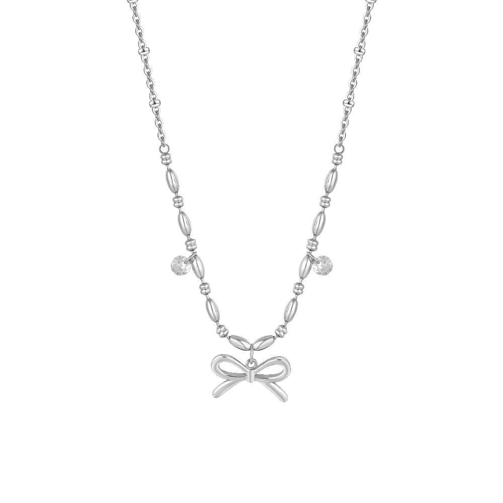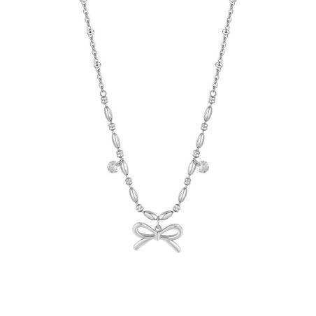 Collana da donna in acciaio con fiocco e zirconi bianchi di Luca Barra.
