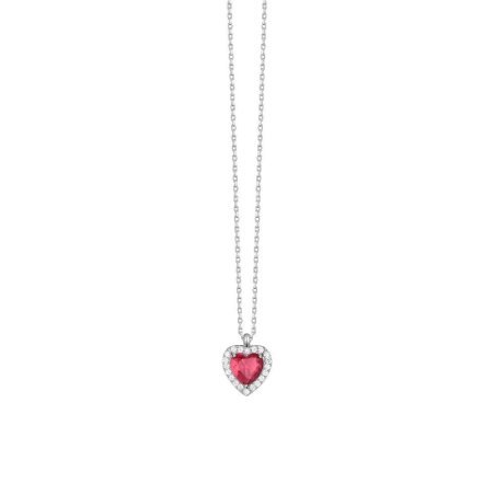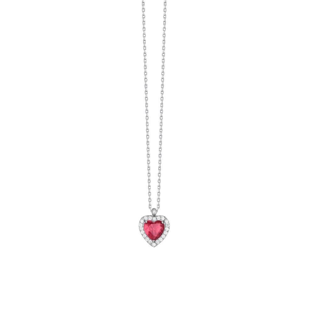 Collana da donna in acciaio con cuore e zirconi rossi e bianchi di Luca Barra.