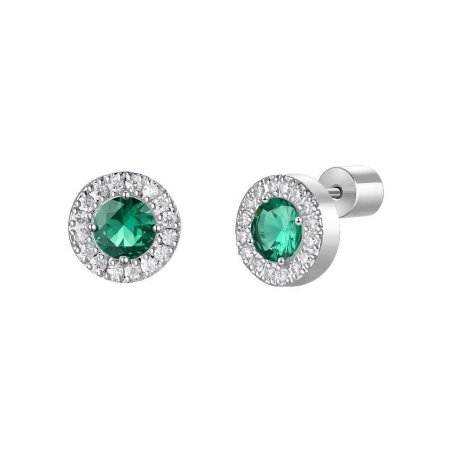 Orecchini da donna in acciaio con zirconi verdi e bianchi di Luca Barra.