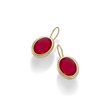 Orecchini a monachella in argento 925‰ placcato oro giallo 23 kt con pasta vitrea rossa, fatti a mano in Italia.