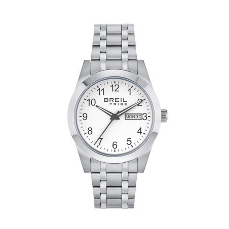 Orologio solo tempo Breil Tribe Rank, acciaio satinato, quadrante bianco.