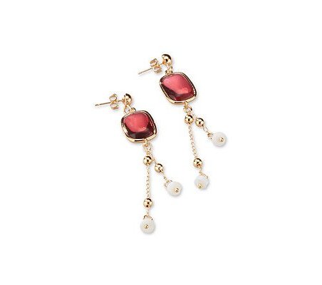 Orecchini pendenti Sovrani Cristal Magique in ottone con cristalli rossi e madreperla.