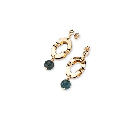 Orecchini pendenti Sovrani con perle nere e metallo oro.