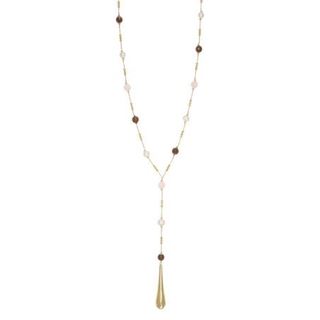 Collana lunga in argento 925 con quarzo rosa e perle, elegante e versatile.