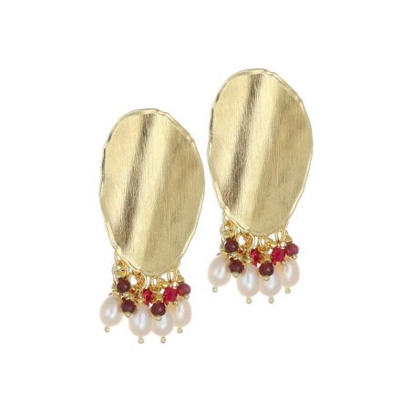 Orecchini pendenti in argento 925 con agata rubino e perle, artigianato italiano.