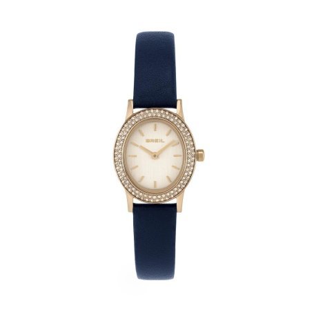 L'orologio solo tempo Alvéa di Breil si distingue per il suo quadrante dorato con finitura spazzolata, esaltato da una lunetta impreziosita da un pavé di cristalli. Le sfere e gli indici gold aggiungono luminosità al design, mentre il cinturino in pelle night blue, con chiusura ad ardiglione, completa il design con un'eleganza senza tempo. Perfetto da abbinare a un tailleur o a un abito elegante, ideale per le occasioni più speciali.