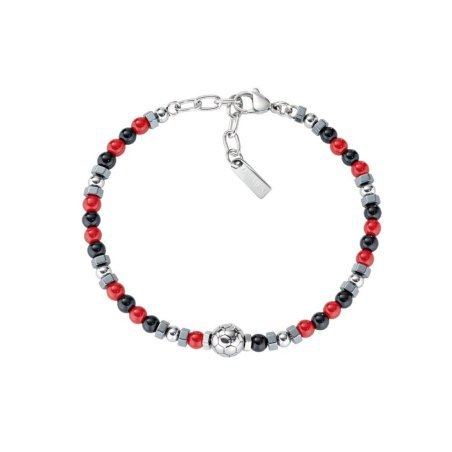 Il Bracciale Tifoso Rosso Nero di Amen è realizzato in acciaio 316L, caratterizzato da un charm a forma di pallone e sfere di corallo bambù rosso e agata nera. Questo bracciale è perfetto per il tifoso che desidera indossare i colori della propria squadra del cuore ogni giorno, esprimendo appartenenza con stile. Disponibile in taglia adulto e junior, è un accessorio che celebra la passione per il calcio, unendo generazioni diverse in un unico spirito sportivo.