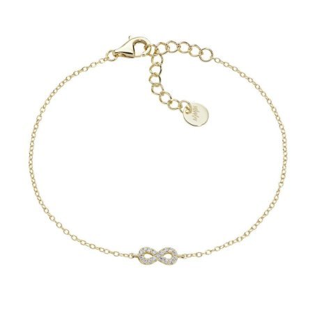 Bracciale in argento dorato con charm infinito e zirconi bianchi.