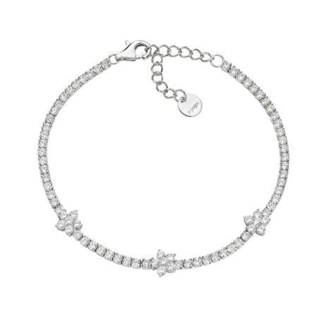 Bracciale tennis in argento 925 con zirconi e fiori, lunghezza regolabile.