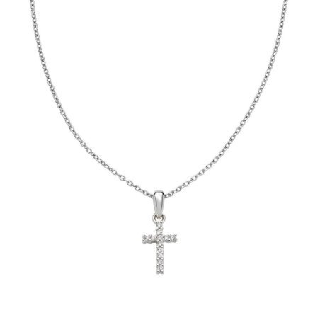 Collana Amen in argento 925 con croce e zirconi bianchi, lunghezza regolabile.