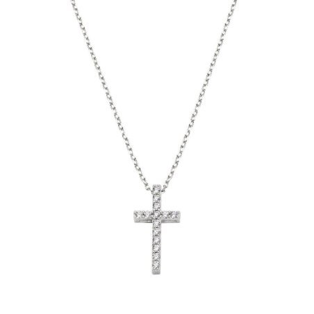 Questa elegante collana Amen è realizzata in argento 925 rodiato, caratterizzata da una croce pendente di 2 cm impreziosita da zirconi bianchi. La lunghezza è regolabile da 40 a 45 cm grazie alla catenina di allungo e alla pratica chiusura a moschettone, rendendola perfetta per ogni occasione e stile.