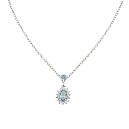 Collana in argento 925 con zircone london blue e zirconi bianchi.