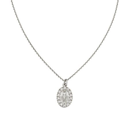 Collana in argento 925 con medaglietta Madonna Miracolosa e zirconi bianchi.