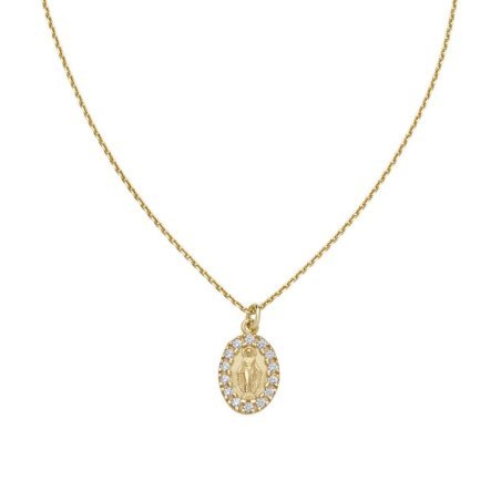 Collana Amen in argento dorato con Madonna Miracolosa e zirconi.