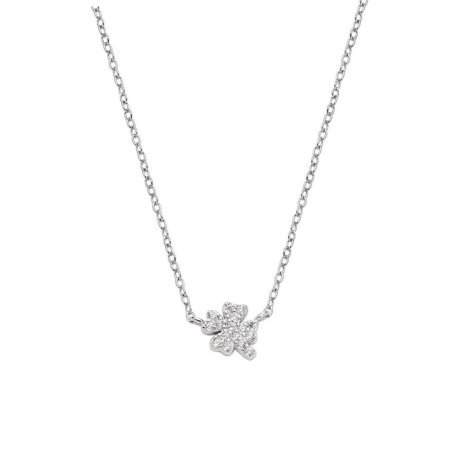 Collana in argento con charm quadrifoglio e zirconi bianchi.