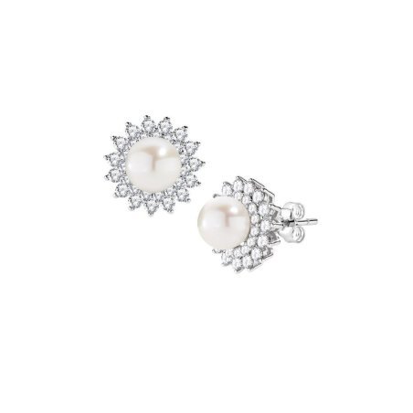 Orecchini a lobo in argento con perla e zirconi bianchi.
