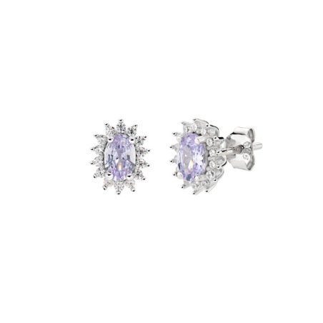 Orecchini a lobo in argento 925 con zircone lilla e zirconi bianchi.