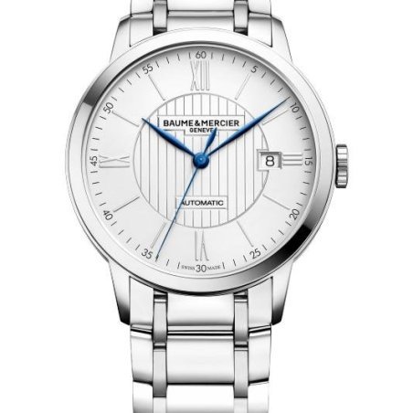 L'orologio Classima 10215 di Baume&Mercier è un elegante segnatempo da uomo realizzato in acciaio. Con un quadrante rotondo di 40mm, questo orologio è dotato di un movimento automatico che include la funzione data. Il cinturino in acciaio aggiunge un tocco di raffinatezza, mentre il fondello in vetro zaffiro con viti offre un design sofisticato. Le lancette blu a forma di foglia si stagliano sul quadrante argentato, conferendo un aspetto classico e senza tempo.