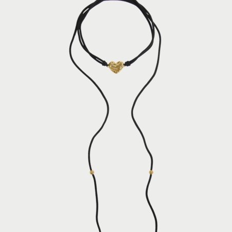 Choker in tessuto nero con cuore Bold, finiture oro 18 kt.