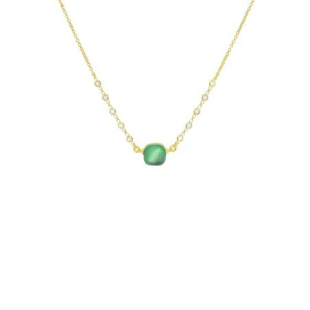 Collana con pietra quadrata verde, incassata a mano, per un look unico.