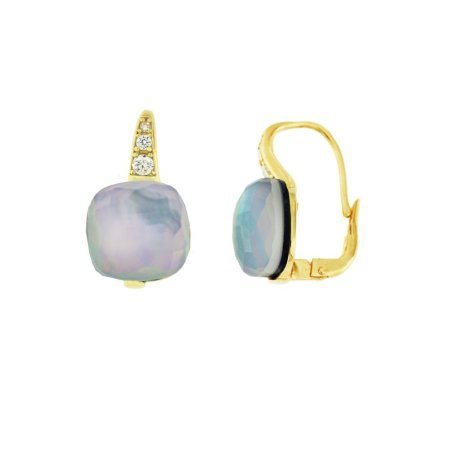 Orecchino monachella con pietra quadrata bianco latte, elegante e raffinato.