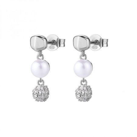 Orecchini pendenti in argento 925‰ con cubic zirconia e perle naturali di Rosato.
