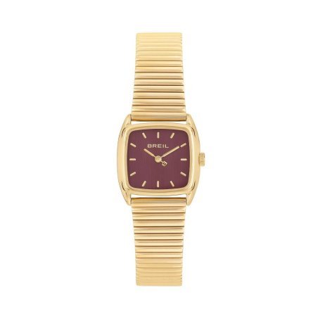 L'orologio da donna Stylize di Breil Tribe è ispirato all'Art Decò, con forme geometriche e linee ripetute. Realizzato in acciaio lucido color oro, presenta una cassa adatta anche ai polsi più piccoli e un bracciale a fitte maglie zigrinate. Il quadrante minimal bordeaux con effetto spazzolato è arricchito da indici e sfere gold, offrendo un look sofisticato e deciso.