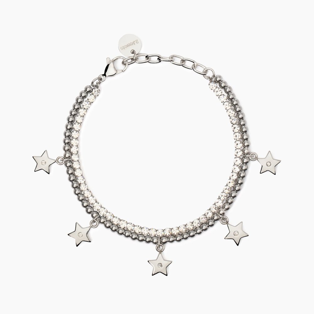 Bracciale in acciaio 316L con cristalli e ciondoli stella di 2 Jewels.