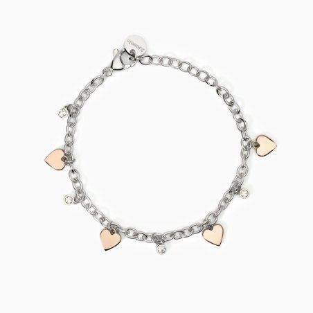 Bracciale in acciaio 316L con ciondoli cuore e cristalli di 2 Jewels.