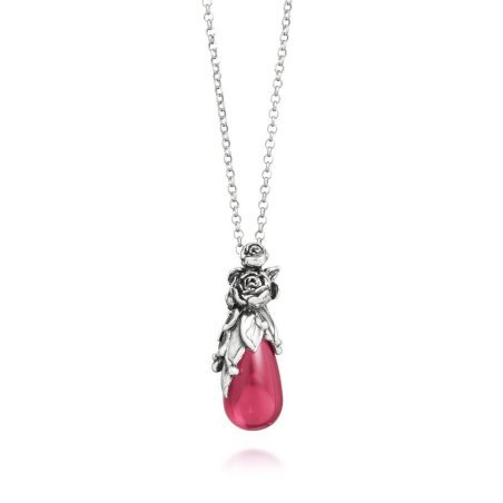 Pendente Goccia Peonie in Argento 925 e Cristallo Rosa, fatto a mano in Italia.
